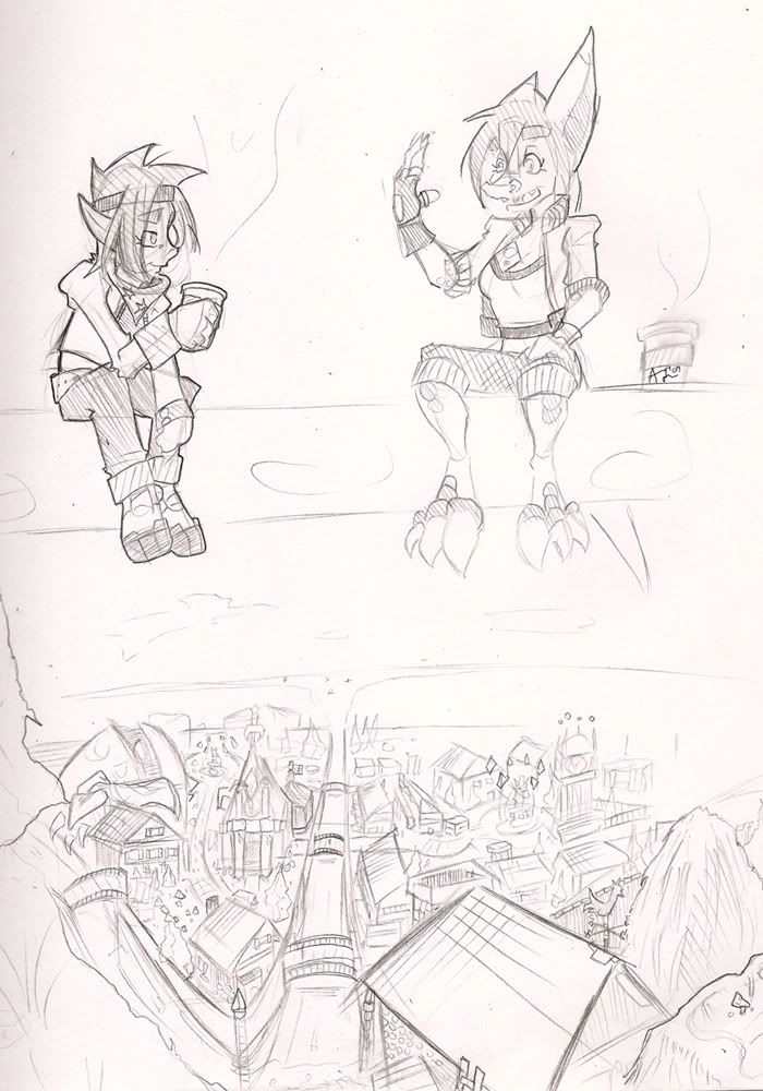 Now I was told that this is tough to do from making comics. I tried in Matt Madden's class the other semester in a jam comic assignment. The response was mixed. Hopefully this will be clear for page 6. I have the entire page with 4 panels of this. The background will be the focus.