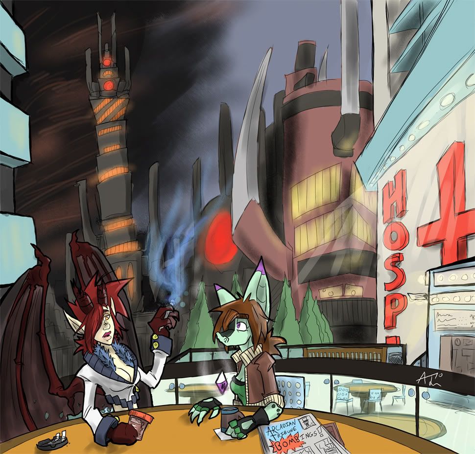 It seemed that there was a lot of action going on while the two went away for their mission. A bombing of a few higher level floors of a skyscraper in the Technology District of Arcadia City. And a series of explosions in the High Class District not too far off.